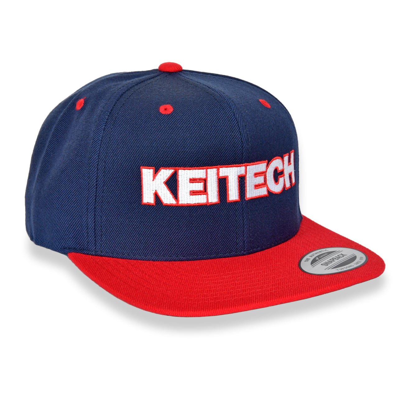 スタンダードな6枚パネルで型崩れしにくく、ていねいな縫製で定評のあるYUPOONG製フラットキャップをベースに、かっちりとしたケイテック・ロゴをフロントセンターに刺繍。