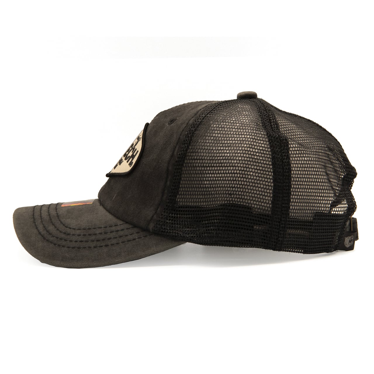 数あるラインナップのなかから、取り分け人気の高いトラッカーメッシュキャップをボディに採用いたしました。ロープロファイルながら頭部を包むようなかぶり心地は同社ならではのものと言えるでしょう。